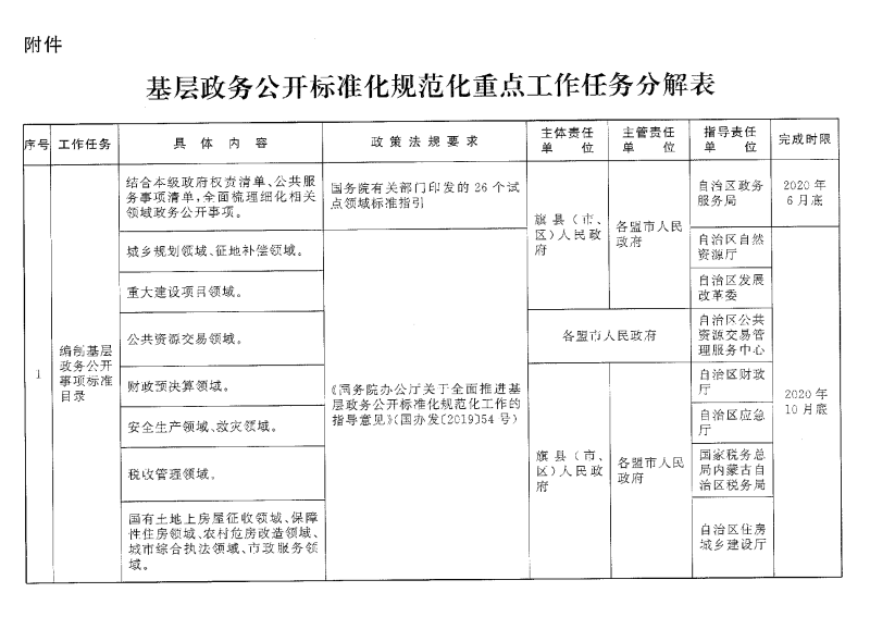 附件:基层政务公开标准化规范化重点工作任务分解表