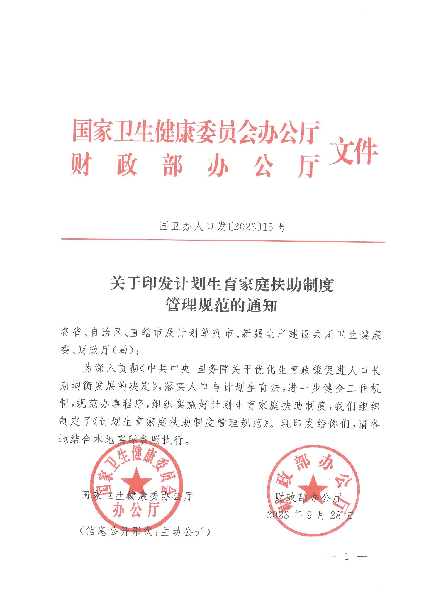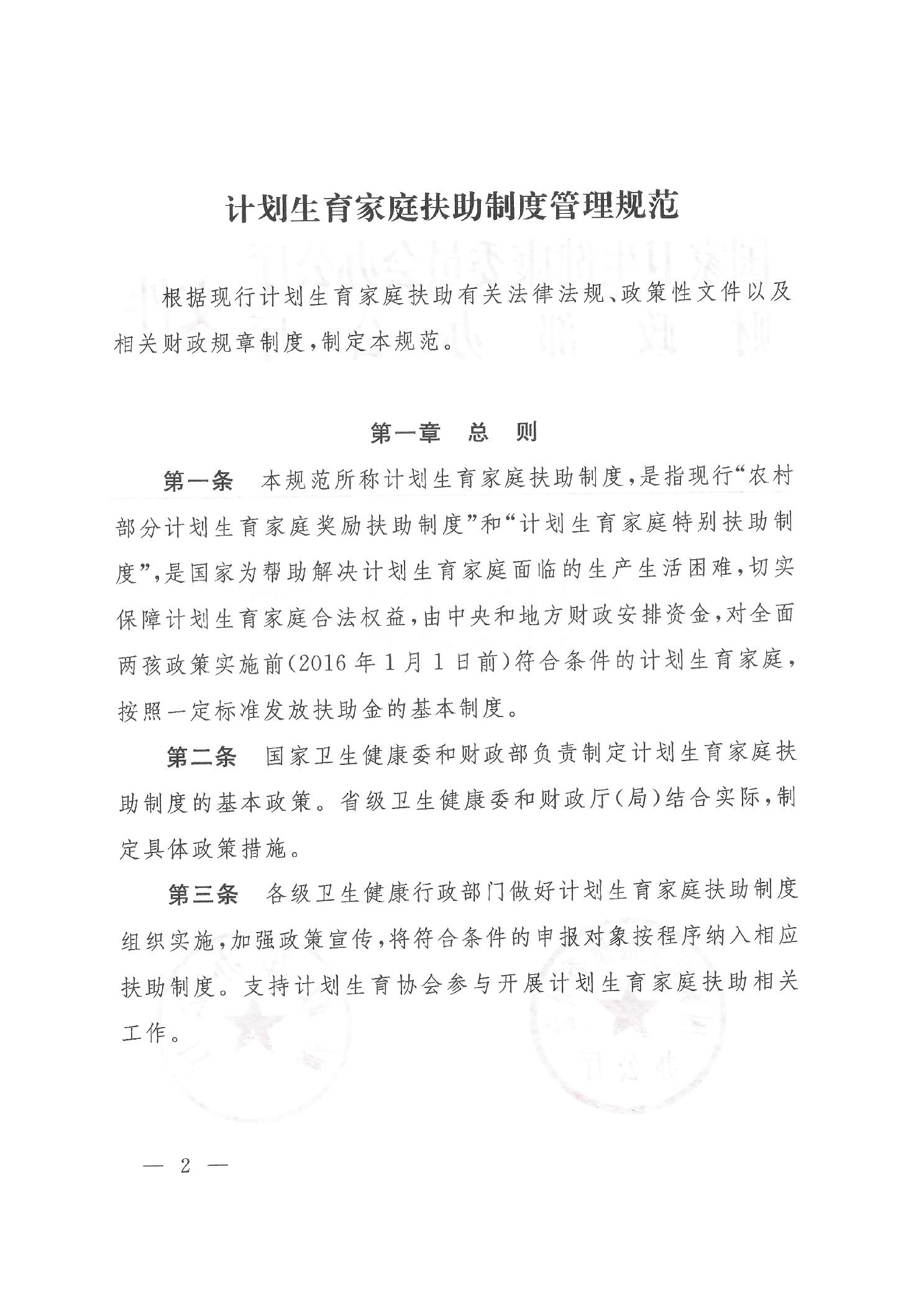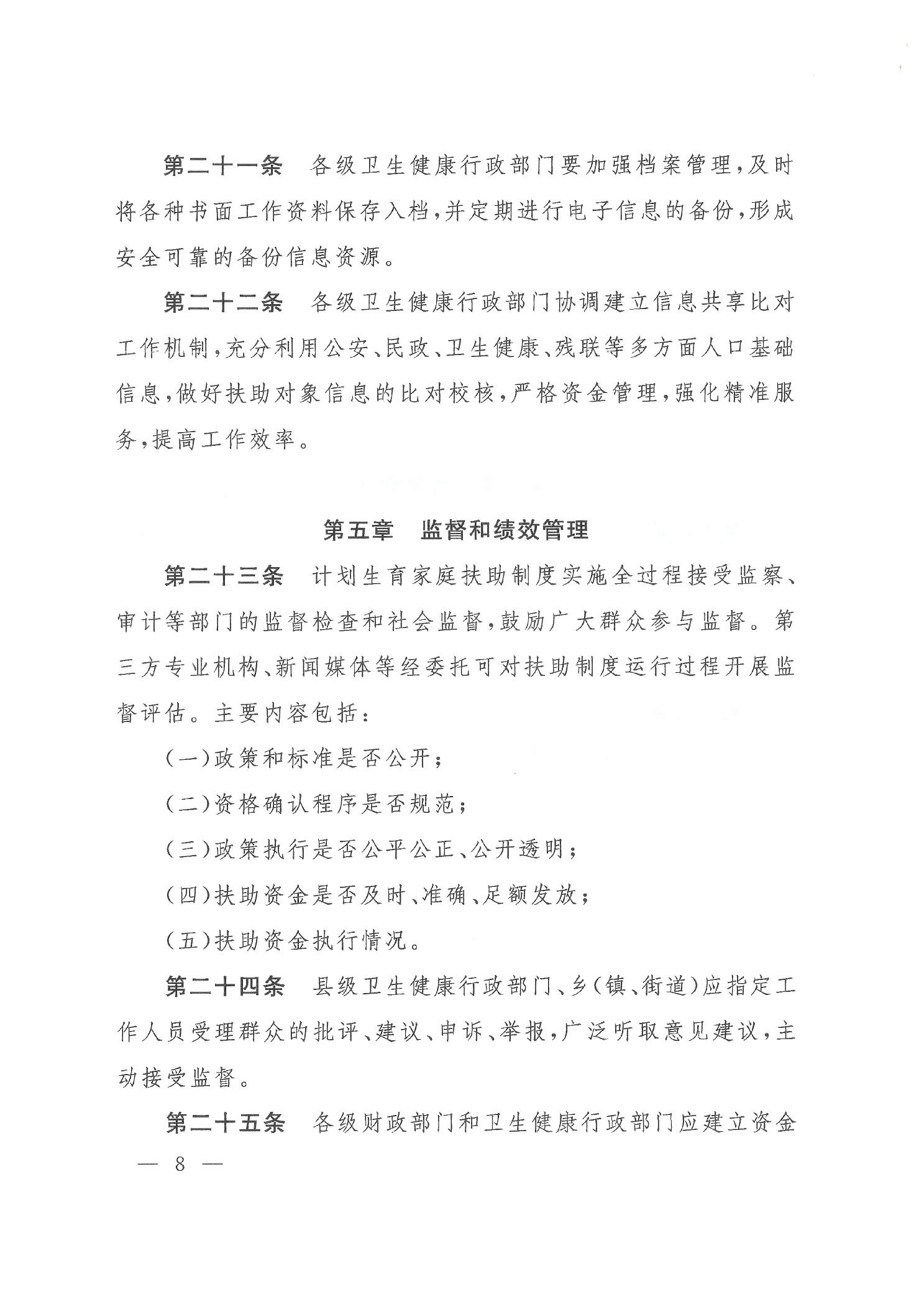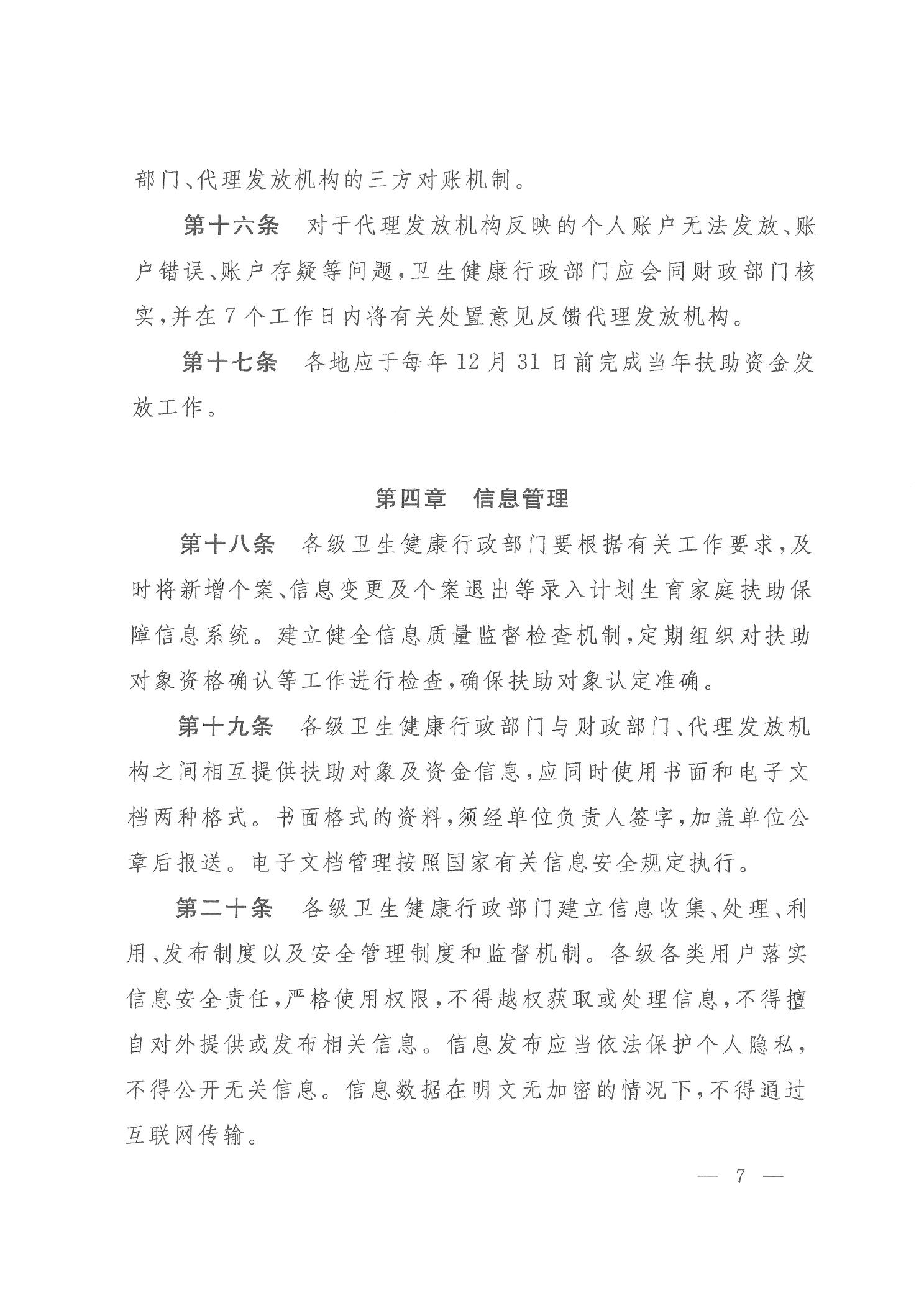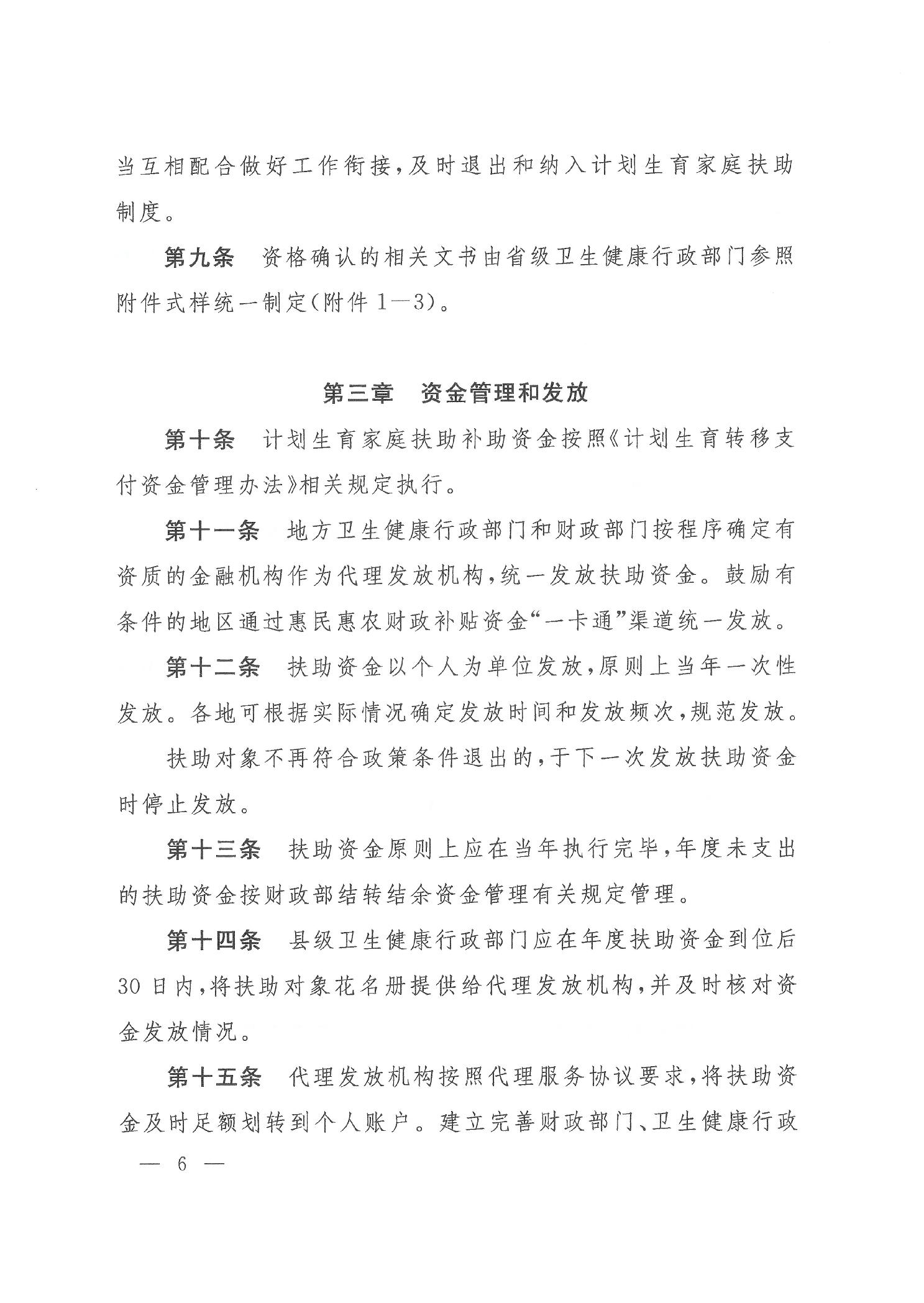 关于印发计划生育家庭扶助制度管理规范的通知