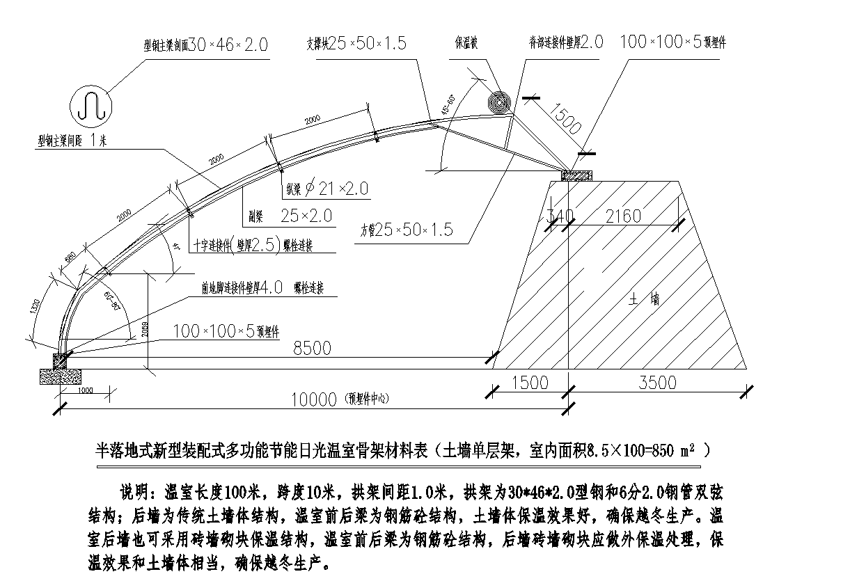 半落地式钢结构骨架日光温室 |