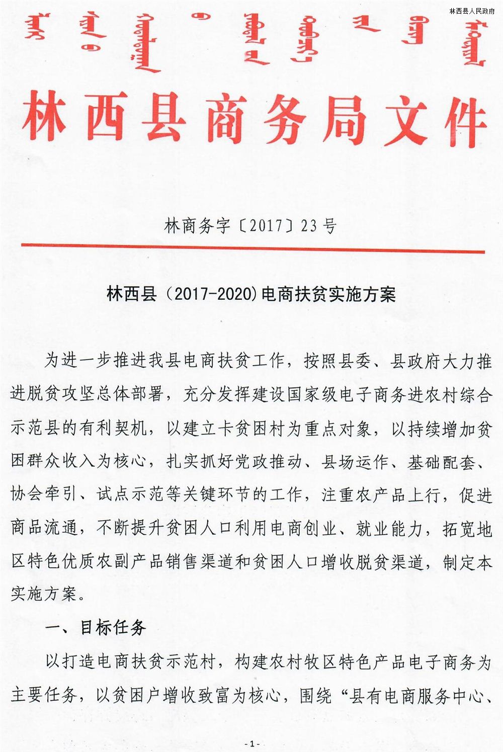 林西县(2017-2020)电商扶贫实施方案