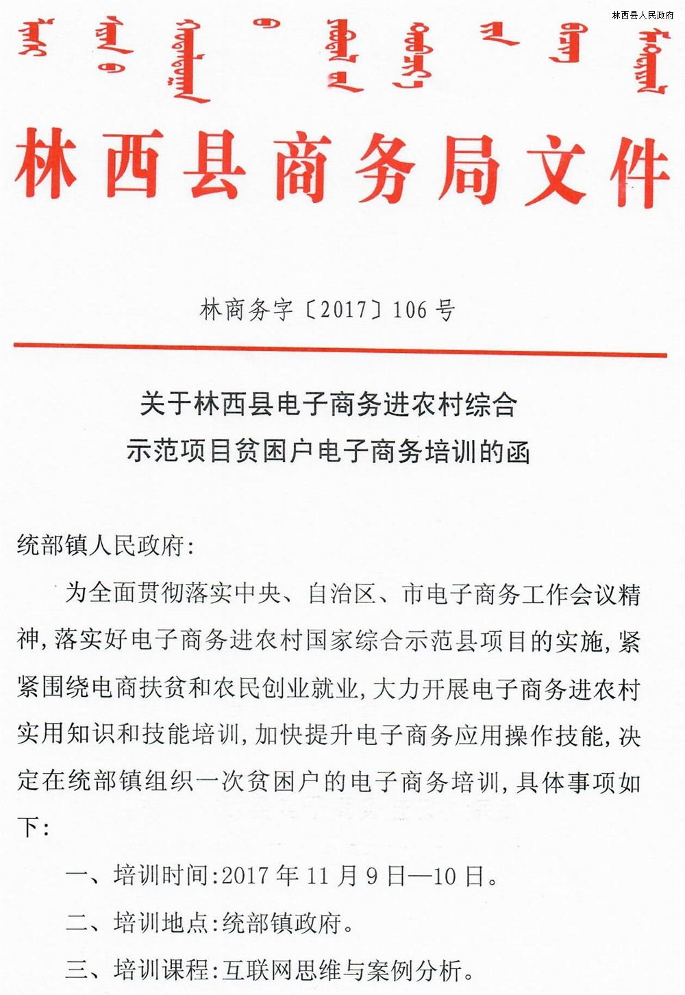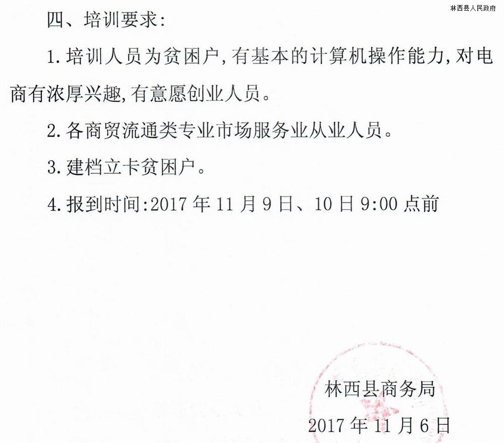 关于林西县电子商务进农村综合示范项目贫困户培训的函