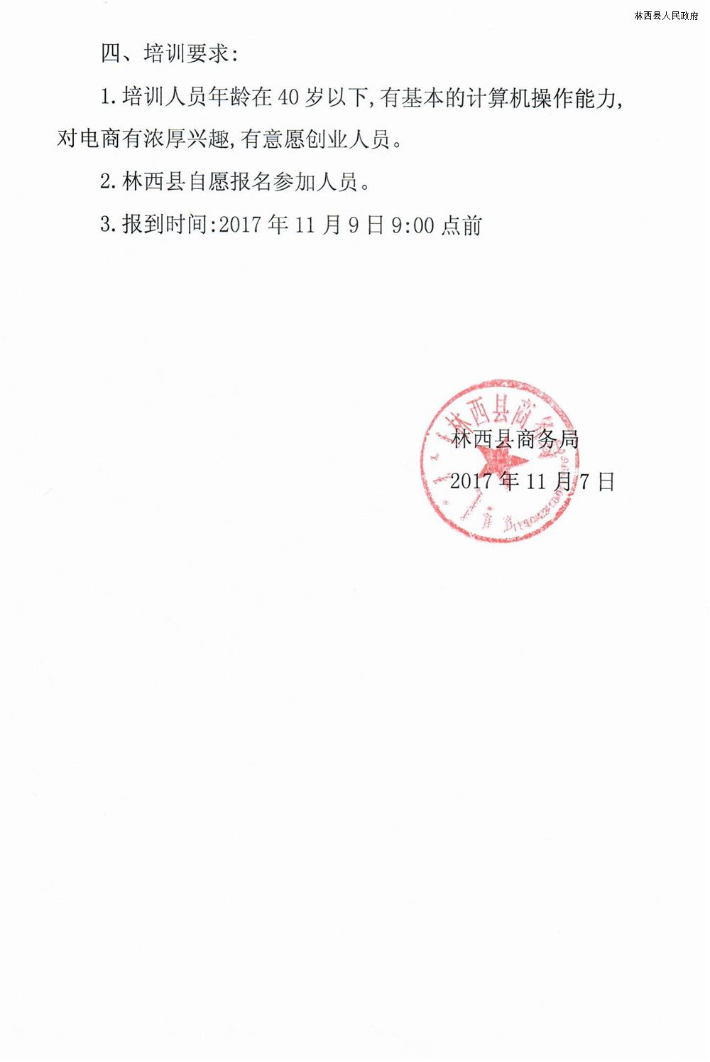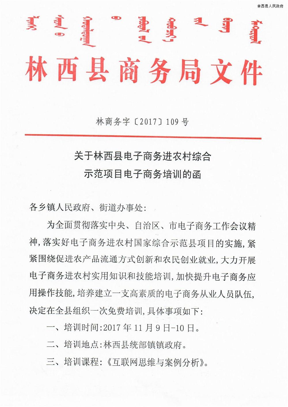 关于林西县电子商务进农村综合示范项目创业培训的函