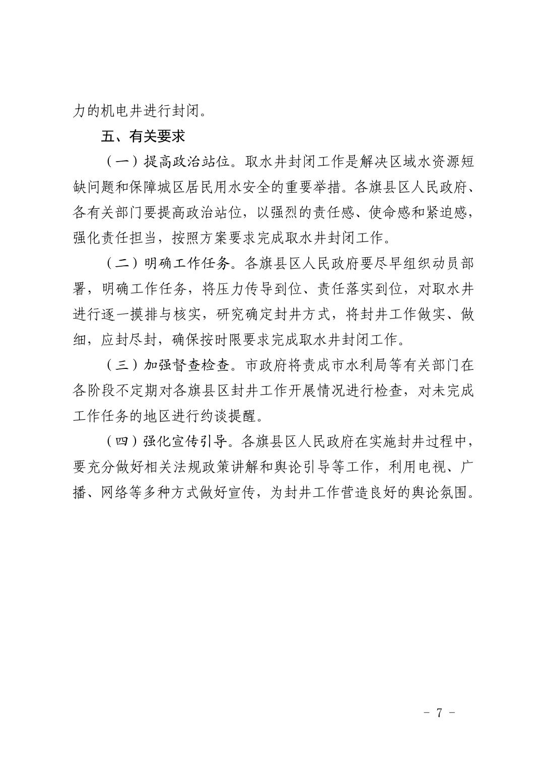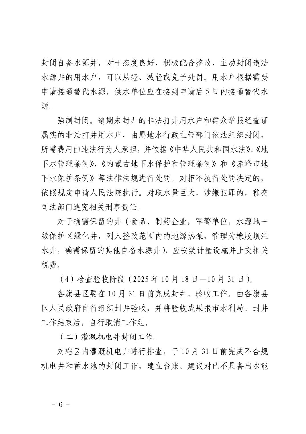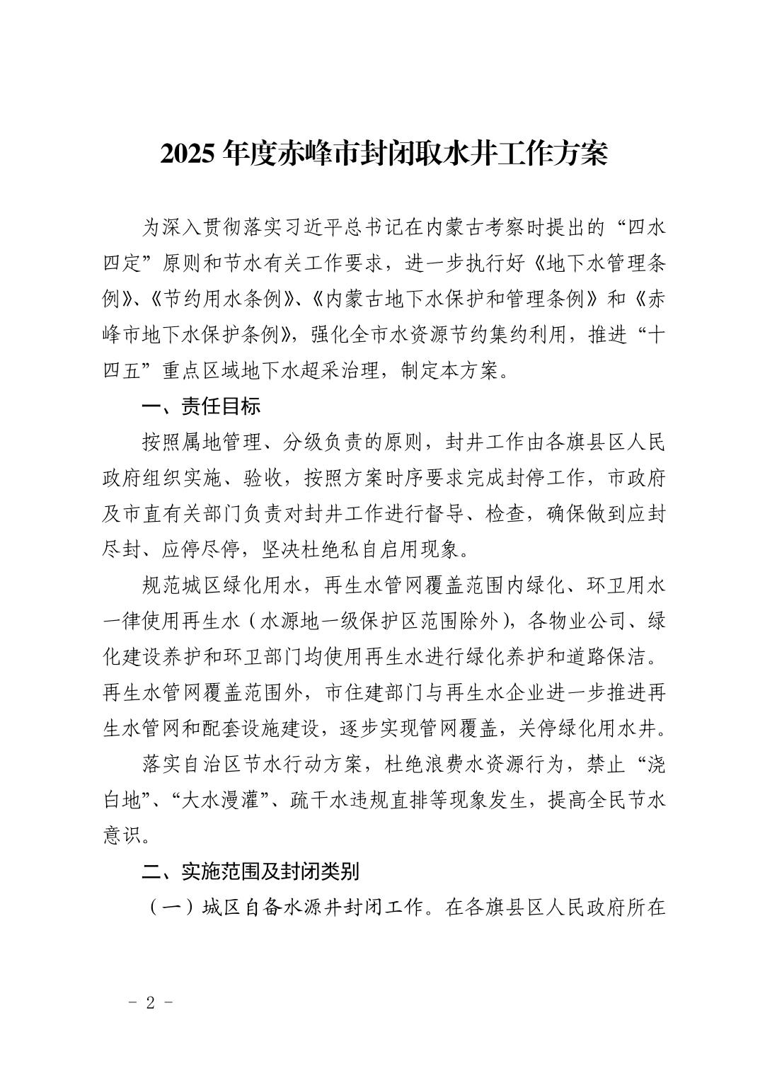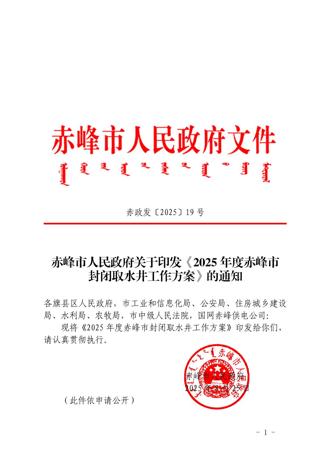 赤峰市人民政府关于印发《2025年度赤峰市封闭取水井工作方案》的通知