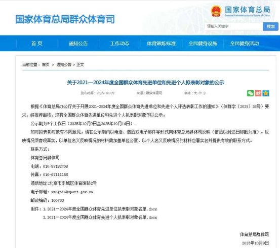 10月9日,国家体育总局公示2021-2024年度全国群众体育先进单位和先进个人拟表彰对象名单,林西县名列其中。