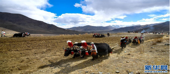 ▲流传在西藏地区的“二牛抬杠”耕作技术相传是文成公主所授,目前仍应用于开启新春第一犁。新华社发