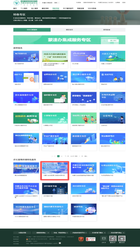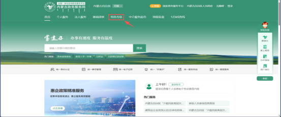 打开“内蒙古政务服务网”找到特色专区。