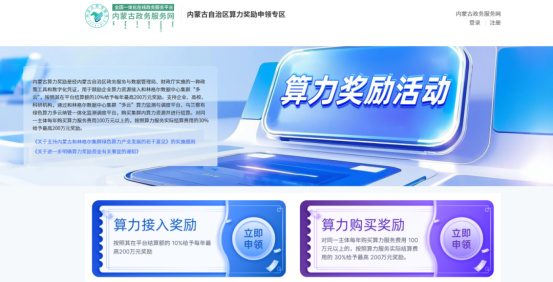 算力用户看过来!“内蒙古政务服务网”上线“内蒙古自治区算力奖励申领专区”,解决您的用算痛点