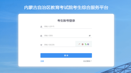 登录“内蒙古自治区教育考试院考生综合服务平台”(https://www4.nm.zsks.cn/BaseStudent/)。