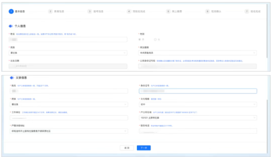 按照页面要求,依次填写“个人信息”、“母亲信息”、“父亲信息”。