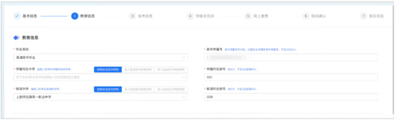 按照页面要求,依次填写“教育信息”、“教育经历”及“学业水平考试成绩”信息。