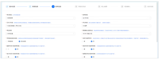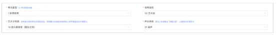 若报考类别为“艺术类”,且“艺术子科类”选择为“音乐表演类”、“音乐教育类”则需要录入曲目信息。