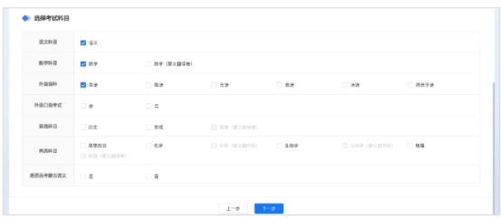 选择考试科目说明:考试类型选择为“秋季统考”、“少年班考试”、“特殊拔尖人才选拔试点”的考生需要进行考试科目选择。