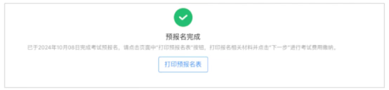 第四步完成预报名,考生须仔细核对填报信息、报考信息及考试科目信息,并点击页面中“打印预报名表”下载预报名阶段相关报名表格文件。