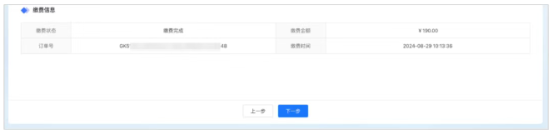 缴费完成后,页面“缴费信息”中“缴费状态”为“缴费完成”,并记录订单号及具体缴费时间信息。
