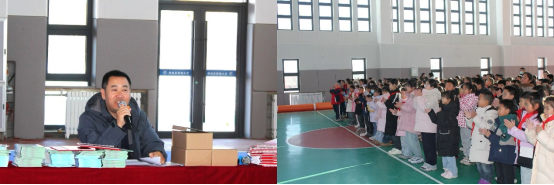 聘任仪式结束后,在运动馆,向参加仪式的三年级同学们发放了精心准备的《中华人民共和国预防未成年人犯罪法》《民法典进校园》普法宣传册500本、法治主题中性笔和宪法台历等宣传品400余份,让同学们在日常学习、生活中能随时随地接受法治熏陶。