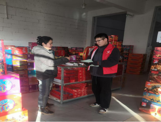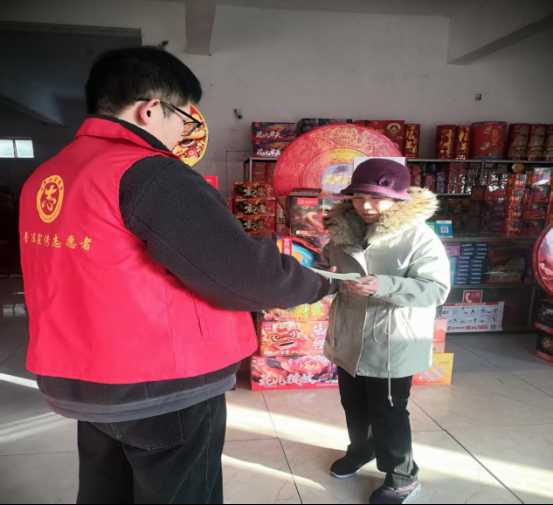 “老板,今年一定要做好烟花爆竹存储工作,务必远离人员密集区域,店内易燃物品要单独存放,消防器材也得定期检查,我帮你看看灭火器压力是否达标。另外,切记不能向未成年人售卖鞭炮。”在某销售点,司法所所长一边发放《安全生产法》《治安管理处罚法》等宣传资料,一边耐心向经营者解读非法生产、经营、储存烟花爆竹的法律后果及应承担的法律责任。同时,工作人员还向过往选购烟花爆竹的群众普及安全燃放知识,提醒大家燃放时远离柴火垛、易燃易爆物品等危险区域,倡导依法、文明、安全燃放,共同守护节日期间公共安全。