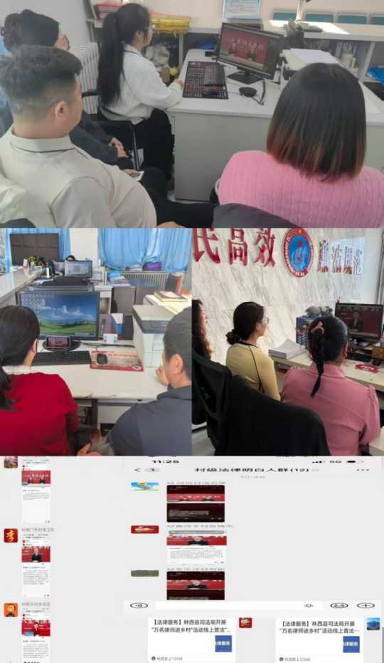 林西镇司法所统筹线上宣传渠道,不仅在村民微信群、商户交流群定向推送节目直播链接,还升级“法治微课堂”内容,由司法所工作人员每周定期推送“万名律师进乡村”活动线上普法“律师讲法”,打破时空限制。