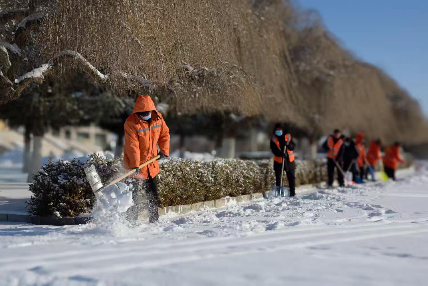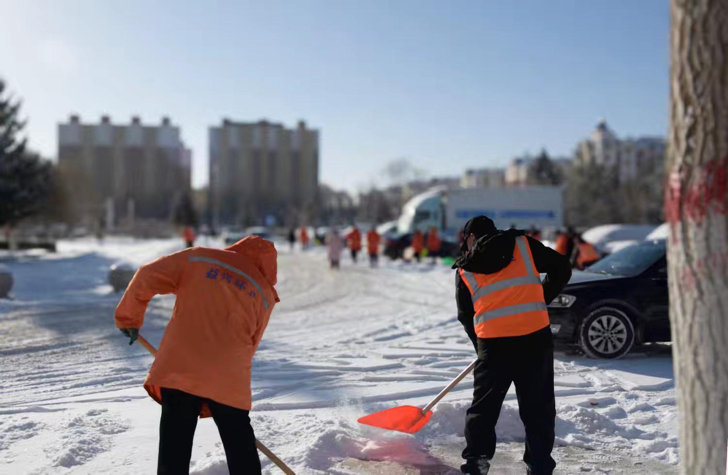 为保障节日期间群众出行安全及焰火晚会有序开展,县城市管理综合行政执法局坚持“以雪为令、闻雪而动”,第一时间启动扫雪除冰应急预案,全面打响清雪保畅攻坚战,切实筑牢城市安全防线。