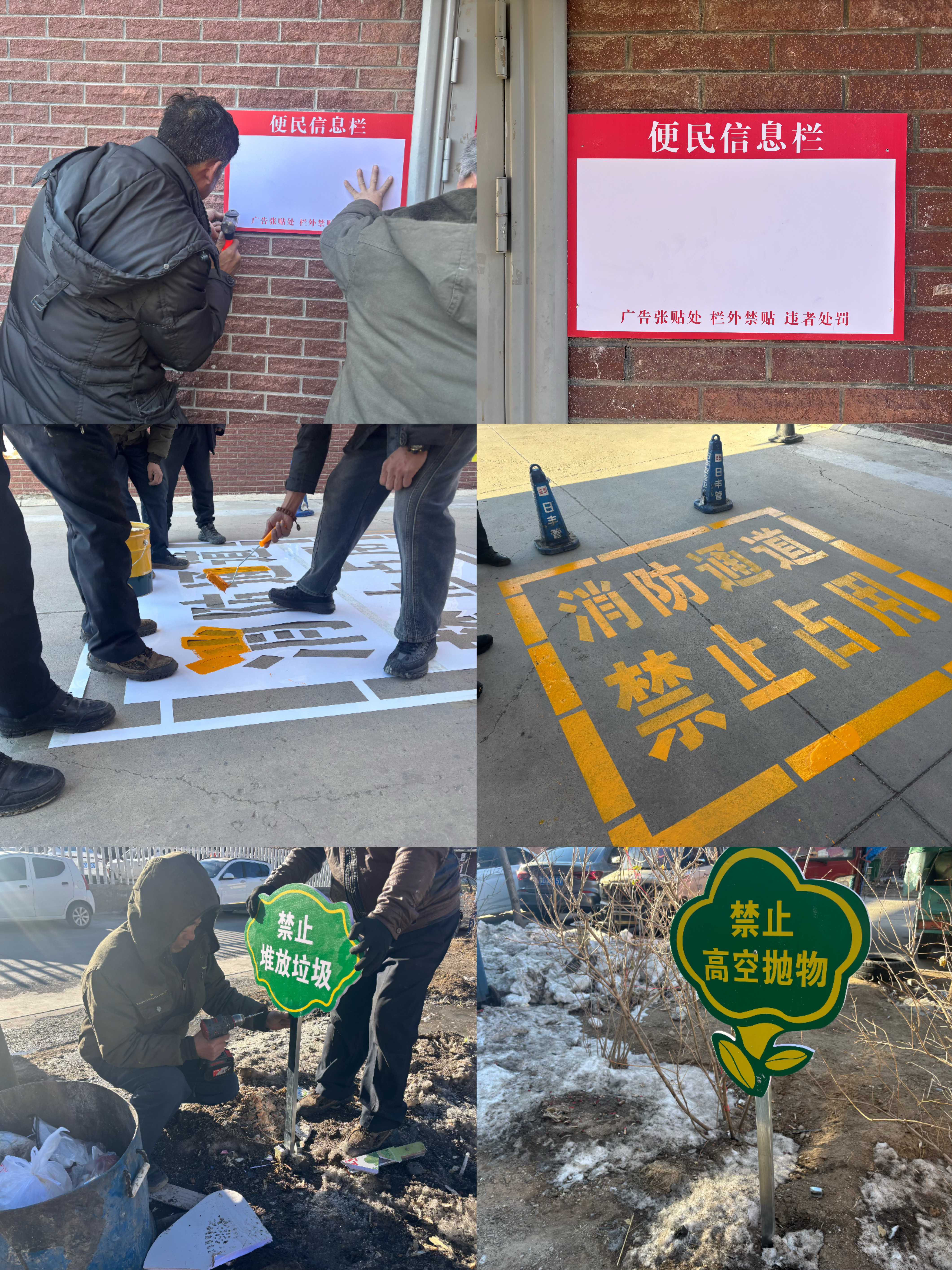 设施补位暖民心。针对社区基础设施薄弱问题,统筹资金为社区购置配备垃圾桶、微型消防站,在各单元楼内粘贴便民信息栏,规范居民信息发布渠道;在小区醒目位置放置警示标语牌,清晰规划喷涂消防通道标识,补齐安全短板,守护群众生命财产安全。