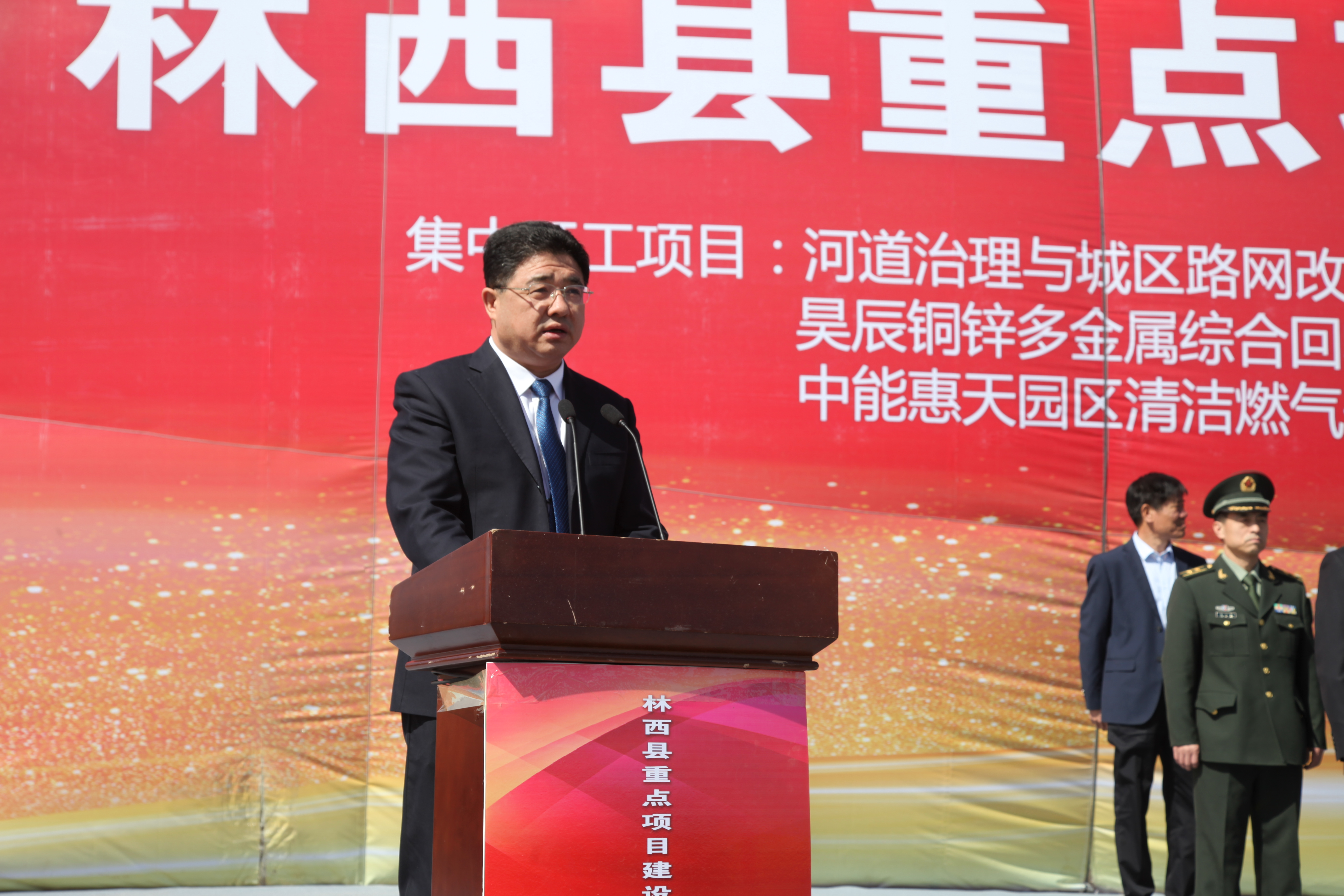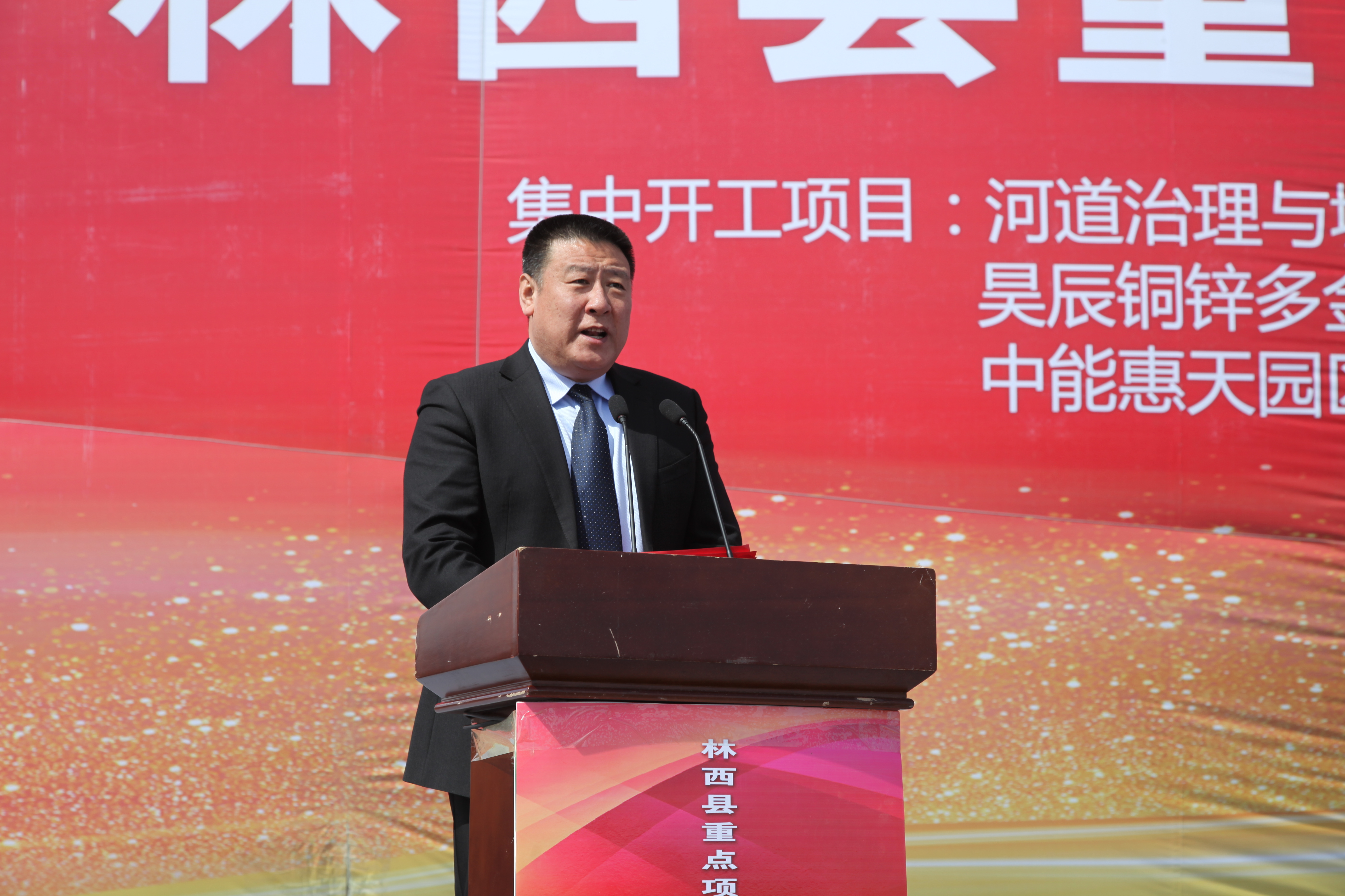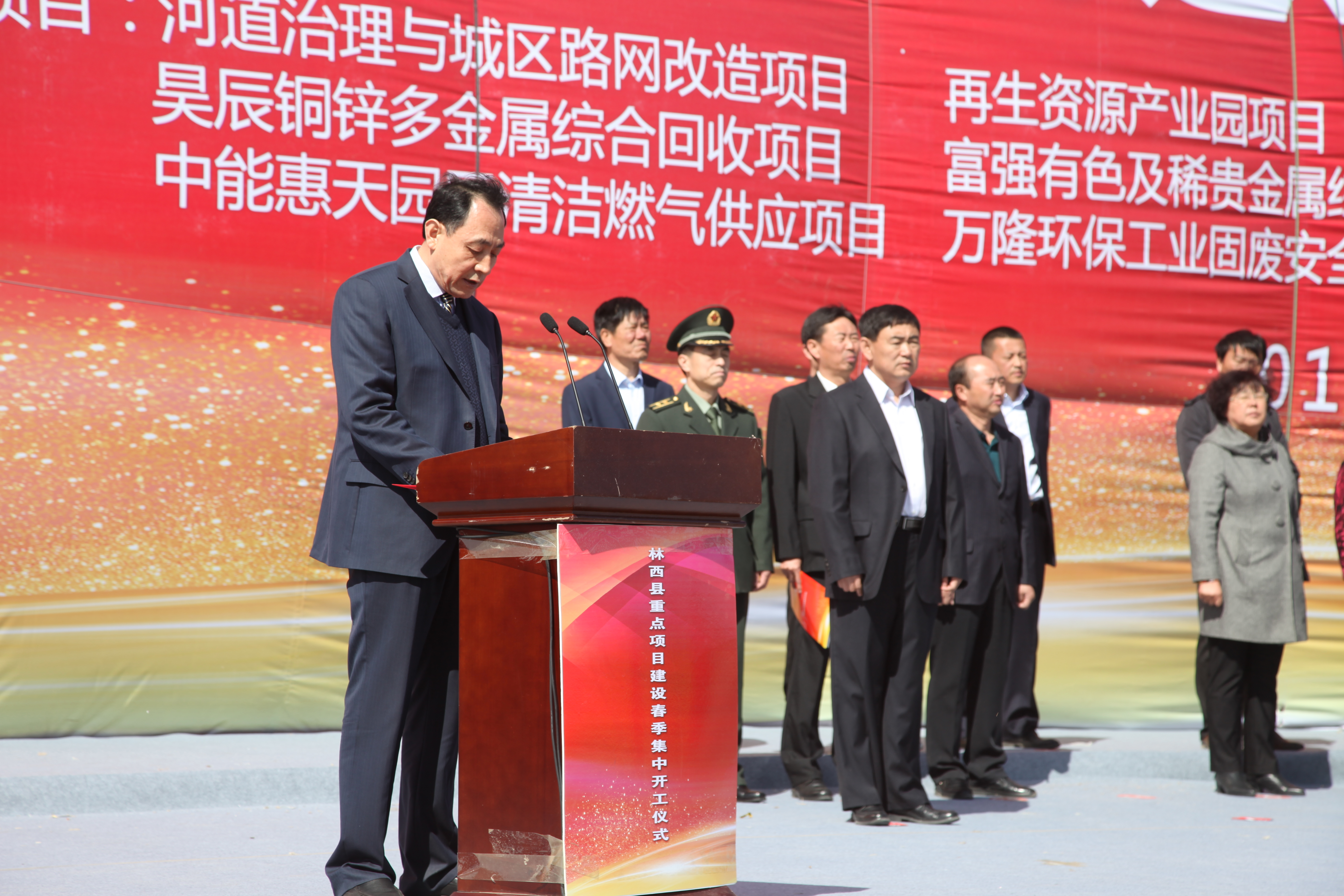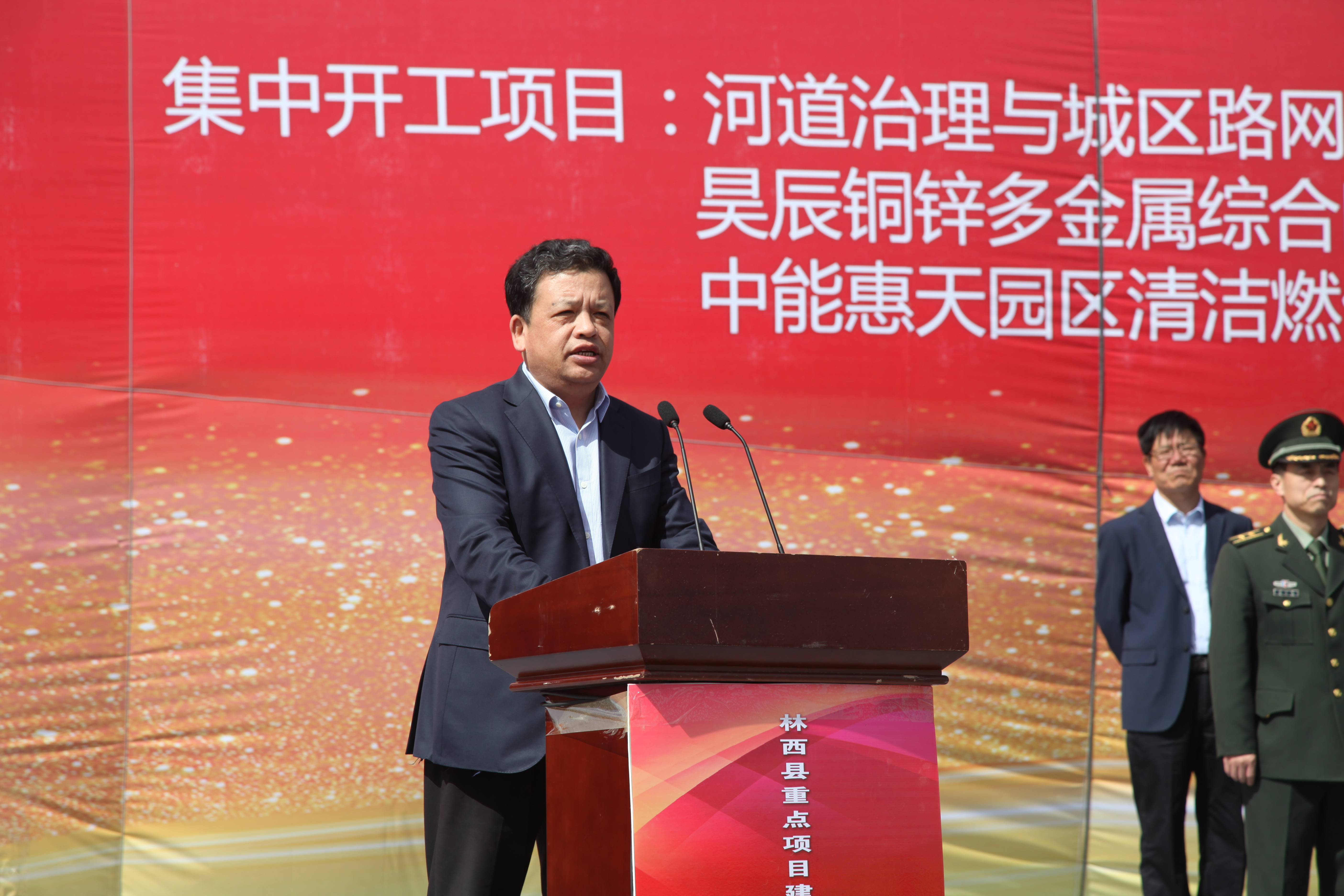 市政府副市长黄国文出席集中开工仪式并讲话。黄国文在讲话中指出,14个重点项目的集中开工,充分体现了林西县抢抓机遇、加快发展的干劲,也预示着林西县跨越发展的春天即将到来。他代表市委、市政府对我县重点项目春季集中开工建设表示热烈的祝贺!
