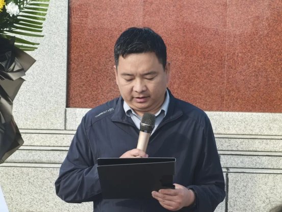 新林镇党委副书记、政府镇长孙扬代表镇党委、政府,向长眠于此的革命先烈致公祭词,并指出全体党员干部要以磐石般的初心,继承先烈的遗志,争当奋发图强的先锋、爱岗敬业的模范、推动发展的表率,用实际行动,为全镇经济社会发展、人民幸福生活贡献力量,无愧于英雄先烈的美好期待,无愧于党和国家殷切希望。