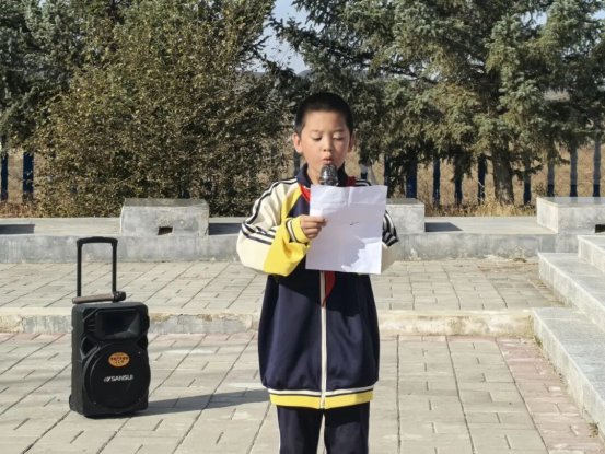 新林镇小学学生代表张辰郗上台发言,用铿锵的誓言表达了继承先烈遗志,传承红色基因,坚定理想信念,树立远大抱负,不负韶华、奋勇向前,争做德智体美劳全面发展的社会主义建设者和接班人的决心和信心。
