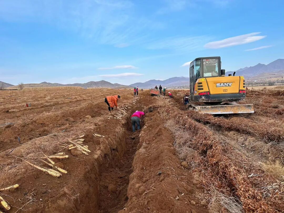 双井村“白玉”山药产业的兴起,始于2024年的一次大胆尝试。村里首次尝试规模化种植山药,种植大户刘仍存带头试种50亩,凭借对当地土壤与气候的精准判断,首年便实现了产量与品质的双突破。正是这份试种成功的底气,让今年的山药种植迎来跨越式发展,从去年的50亩扩至连片规模化种植,逐步成长为带动乡村发展的潜力产业。