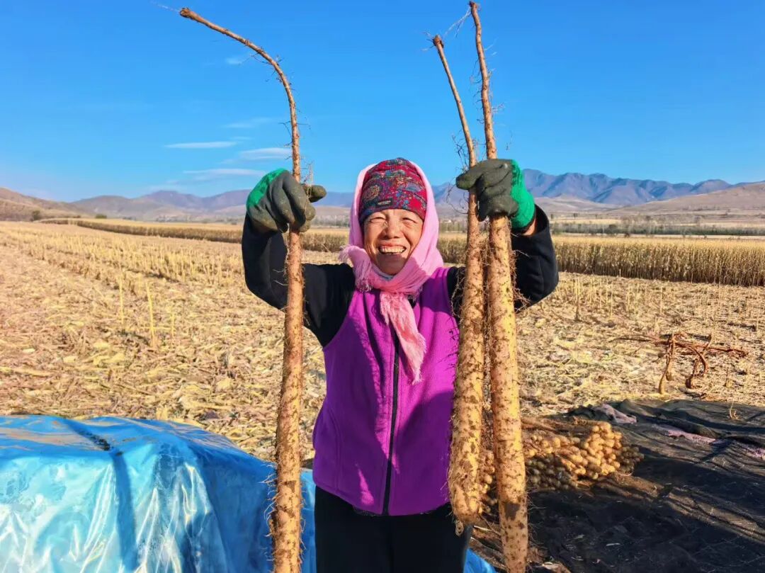 山药产业的兴旺,不仅富了种植户,也为周边村民打开了就近就业的大门。家住小城子村的王桂兰,这两个月每天都来基地打工。“去年来这儿打零工,一天能挣180块,今年涨到200块,这两个月下来能增收1万元左右,既能照顾家里老人孩子,又能添份收入,比出去打工舒心多了!”山药种植基地负责人刘仍存介绍,山药进入采收旺季,每天用工量稳定在30余人,“这些工人都是周边村的村民,既能帮他们增加收入,也解决了基地用工难题,算是‘双赢’!”