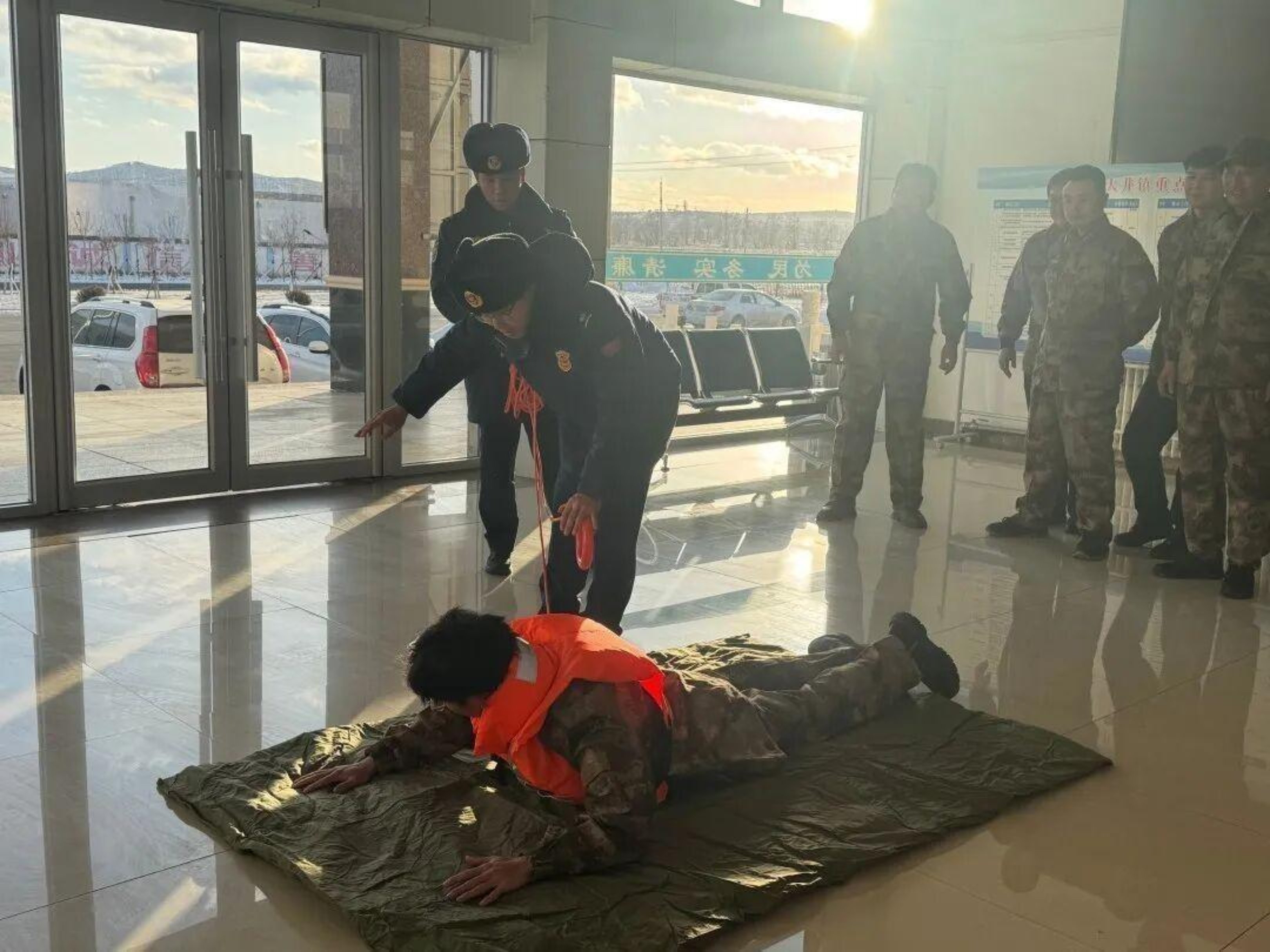 本次培训特邀请县消防救援大队王宇、宗迪同志到场授课。培训中,王宇结合冬季冰面救援的特点和实战需求,系统讲解了冰面遇险自救互救要点、应急救援装备使用规范等专业知识。在实操教学环节,培训人员围绕救生圈、救生衣、救生绳等常用救援器材的操作方法进行手把手指导,对冰面匍匐前进、落水人员拖拽等关键动作逐一拆解示范,确保参训人员熟练掌握操作要领。