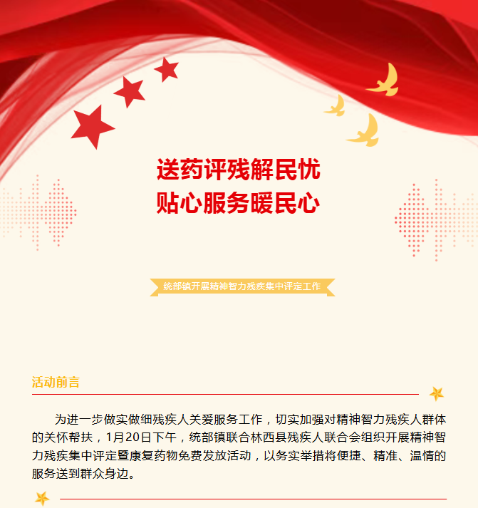 【工作动态】统部镇开展精神智力残疾集中评定暨康复药物免费发放活动