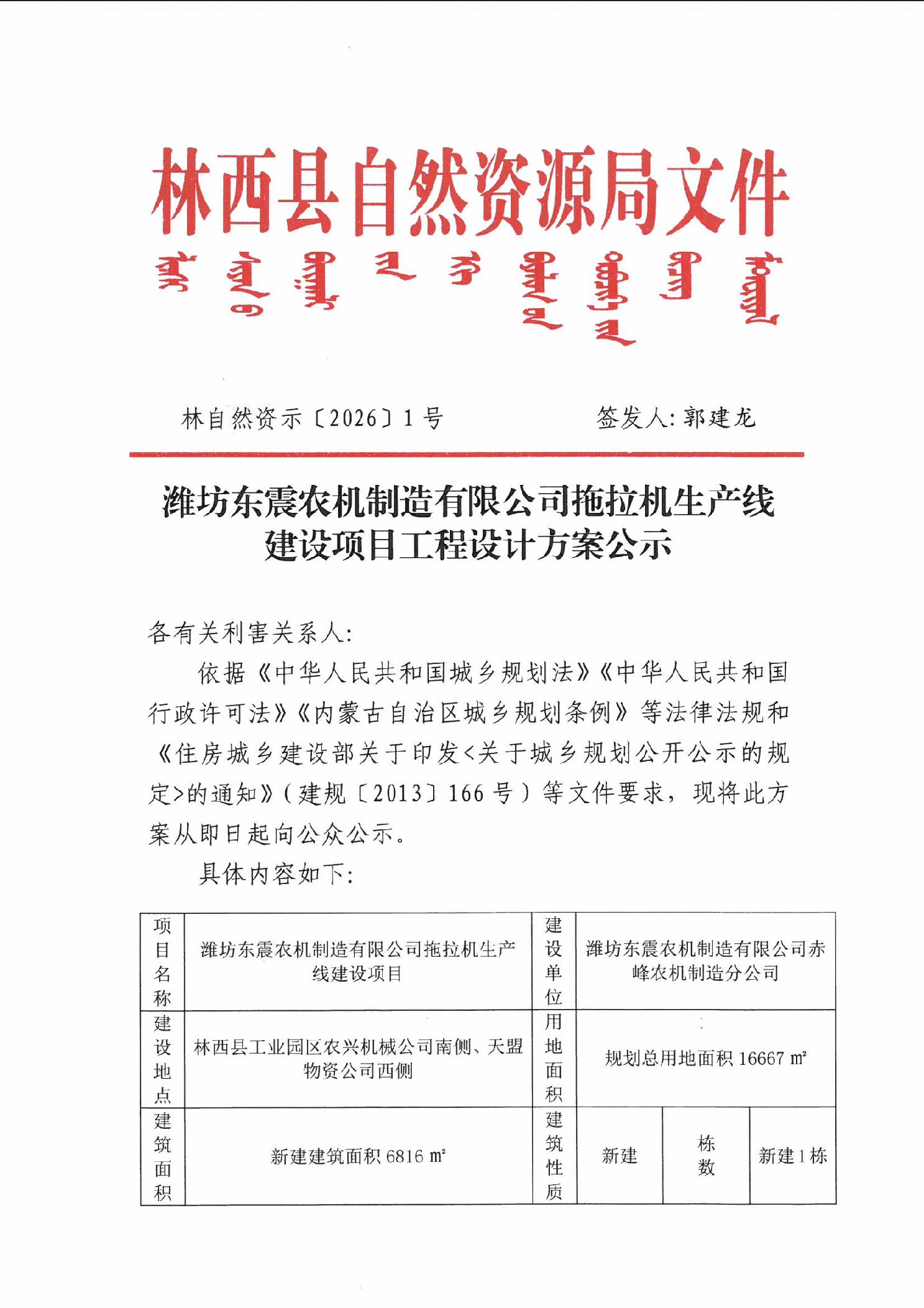 潍坊东震农机制造有限公司拖拉机生产线建设项目工程设计方案公示
